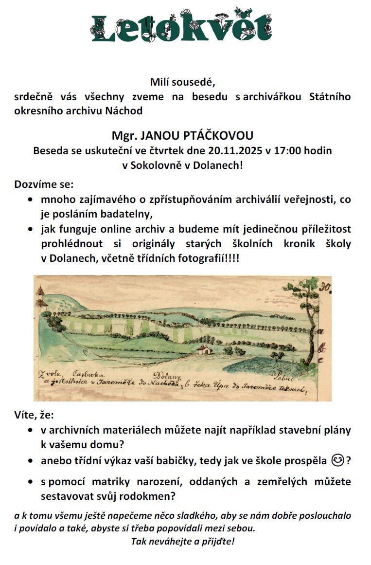 srdečně vás všechny zveme na besedu s archivářkou Státního okresního archivu Náchod